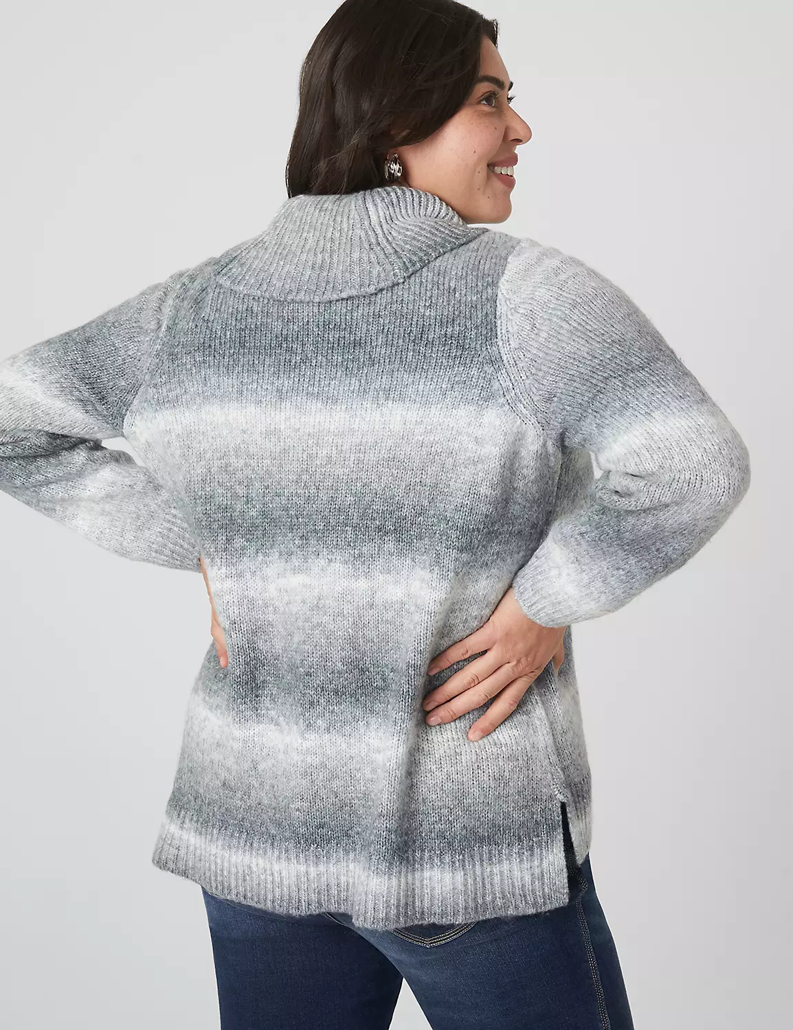This classic fit sweater with a cowlneck and ombre spacedye effect is a triple-threat — cozy, colorful and eye-catching.