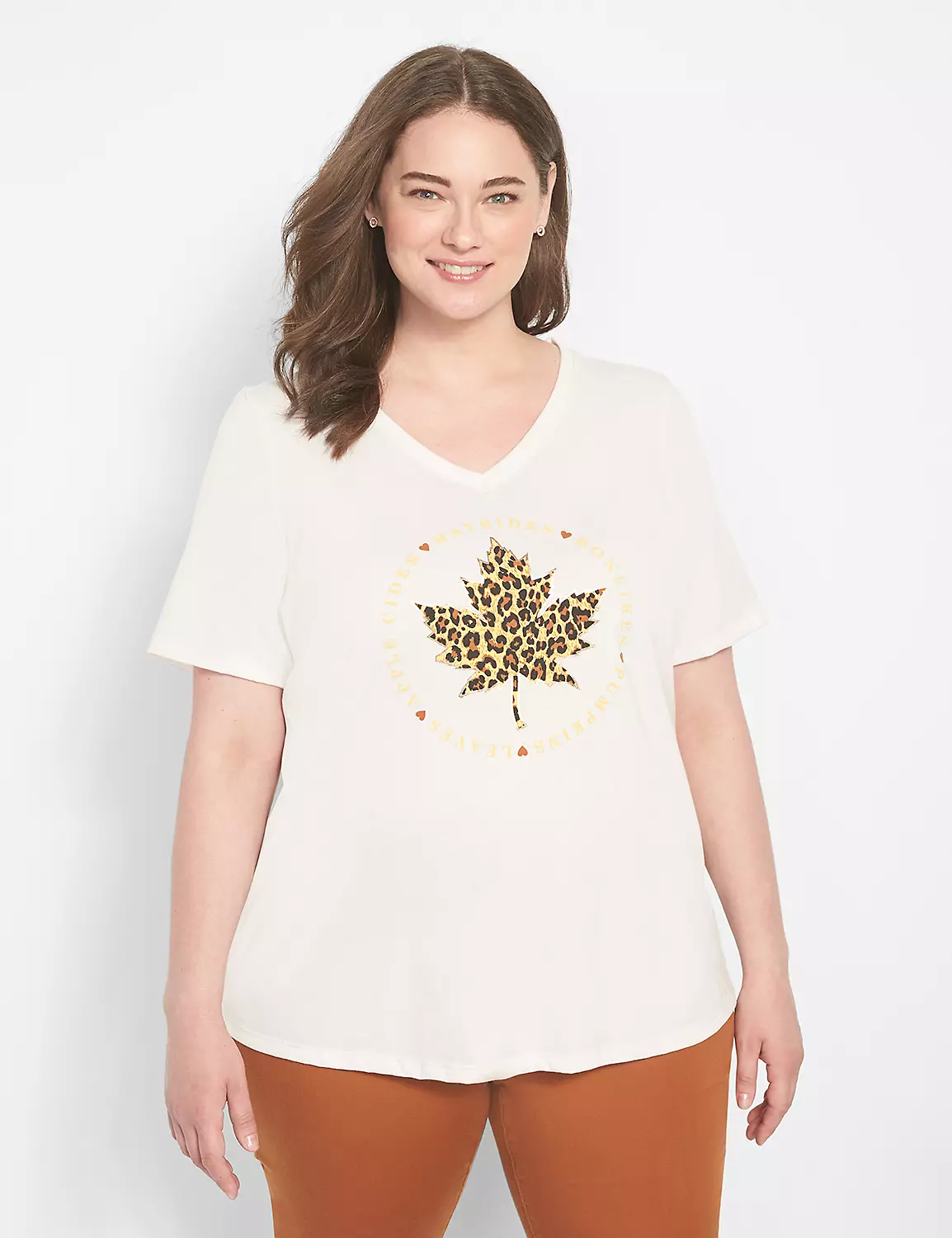 Calling all autumn lovers! This classic fit tee features a fall-inspired leaf graphic with cheetah print.