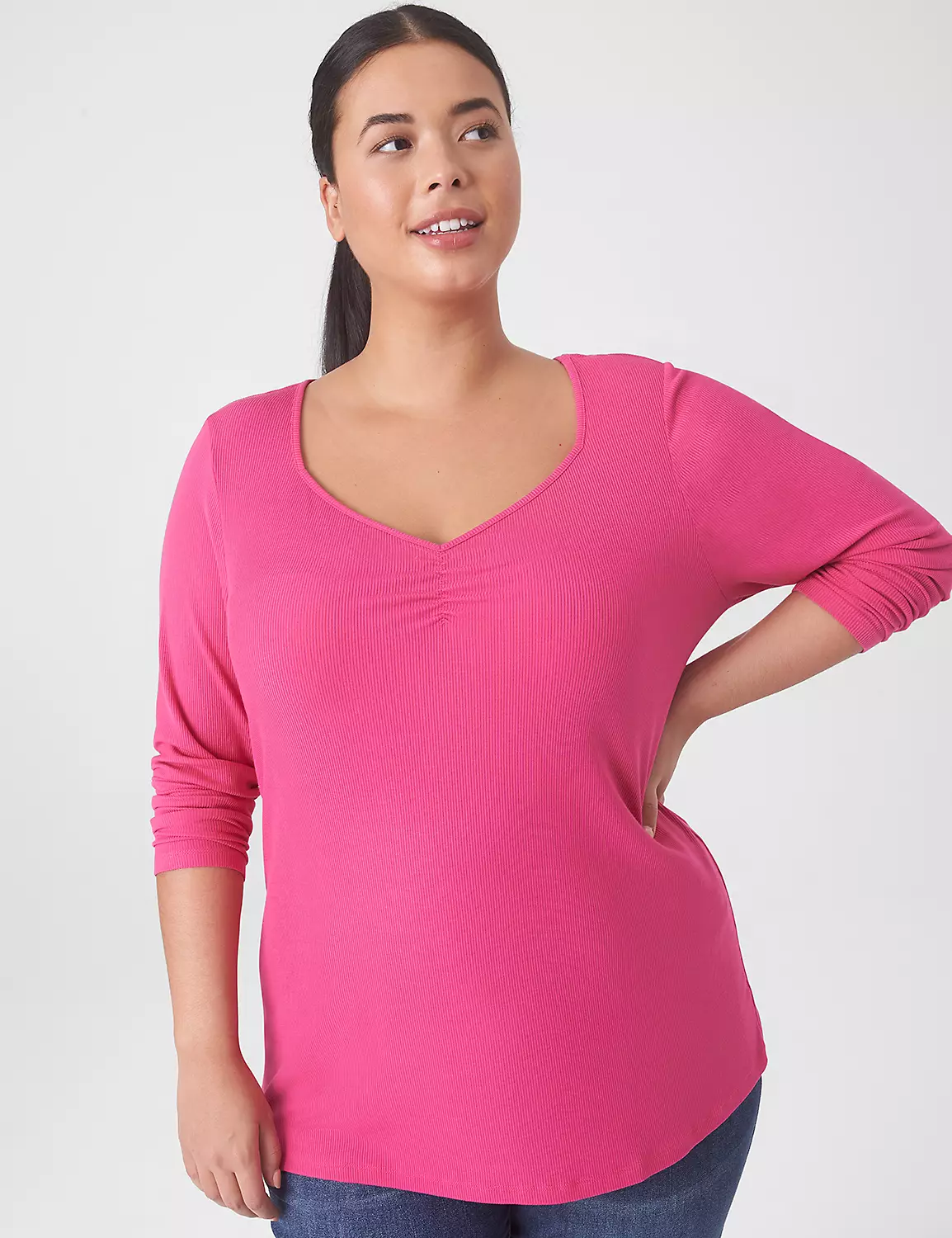 A classic fit top in comfy ribbed knit with a romantic sweetheart neckline — whether you dress it up or keep it casual, the styling possibilities are infinite.