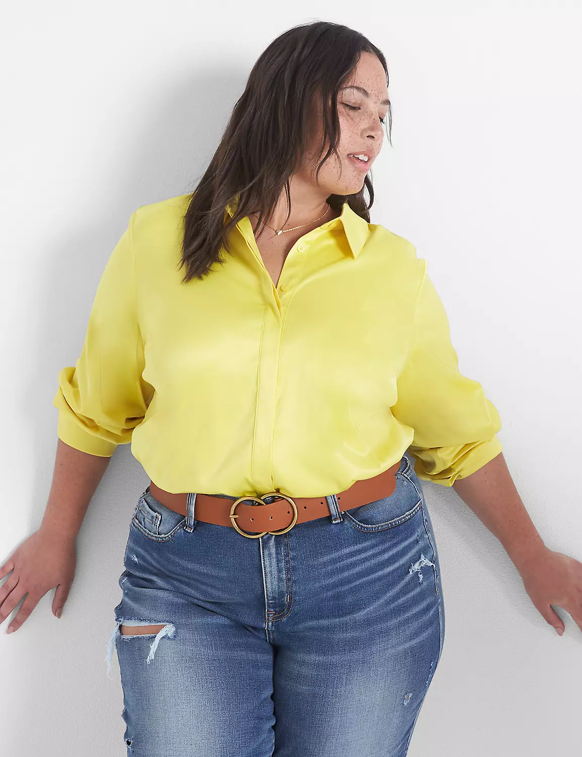 Take a classic, elevated button-down, add luxe satin fabric, you’ve got a fresh upgrade for the seasons ahead.