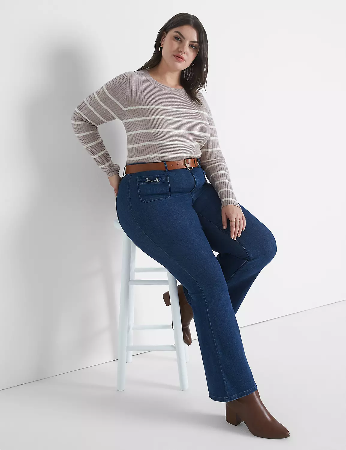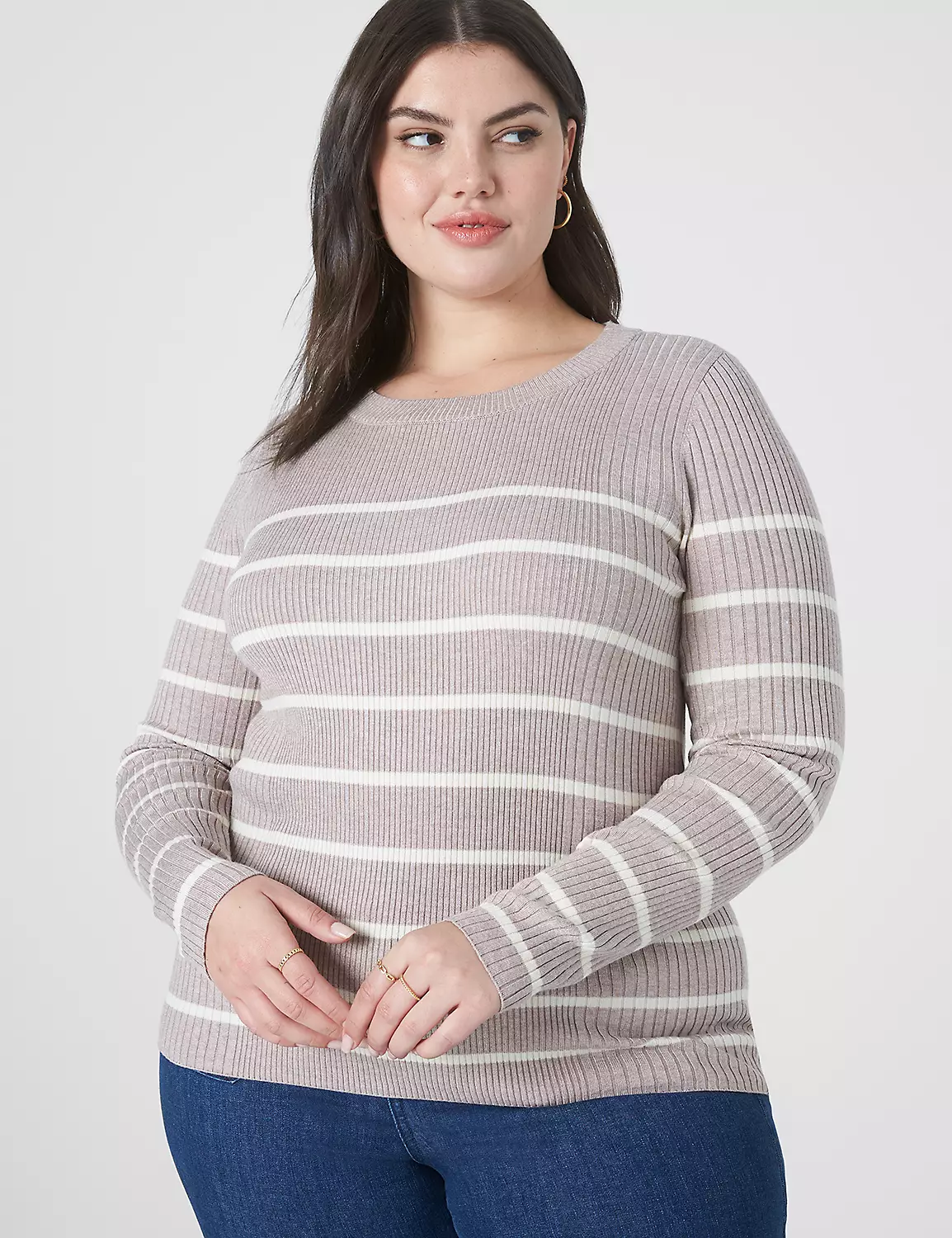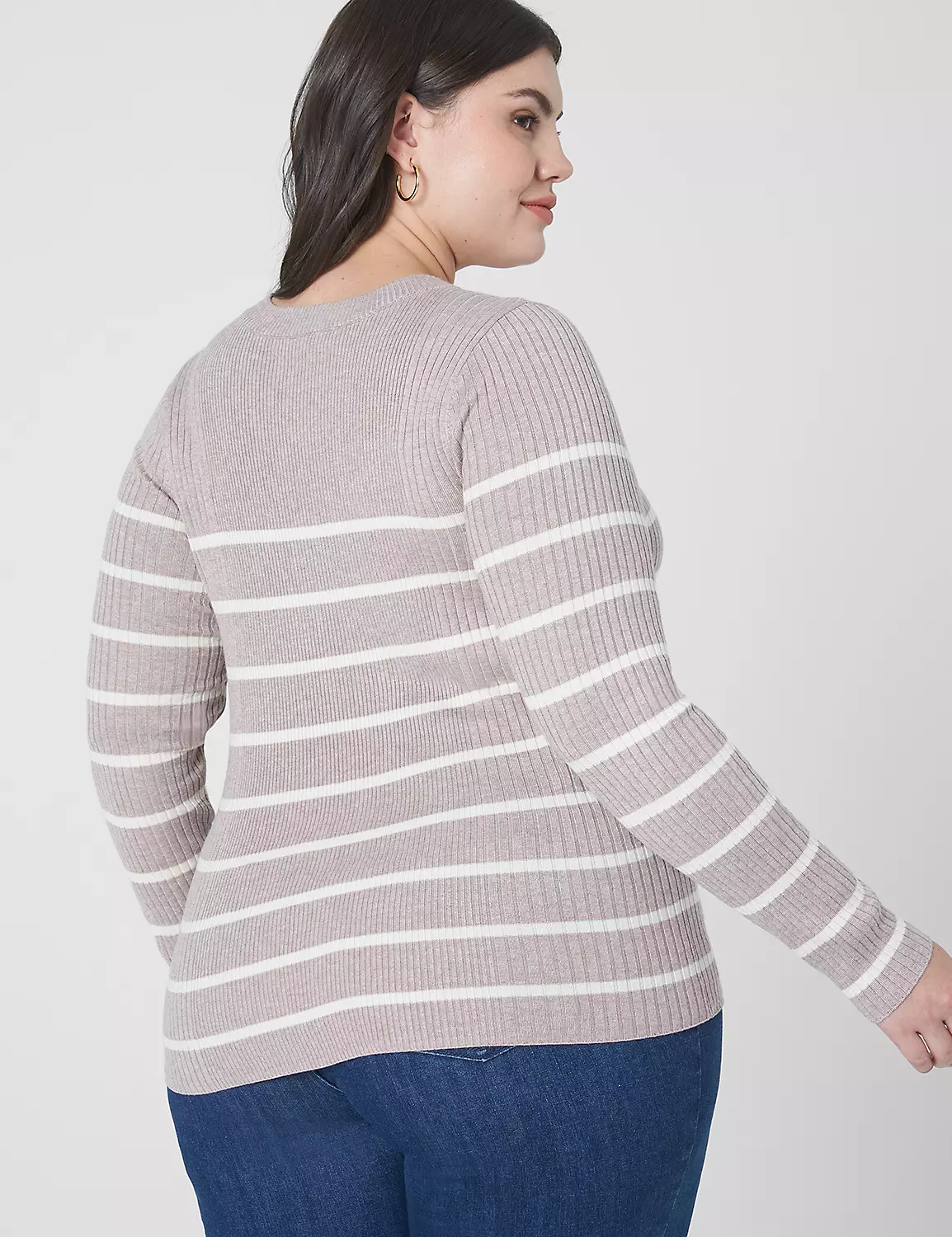 So-soft knit sweater with classic stripes — a combo as essentially cozy as hot coco + marshmallows.