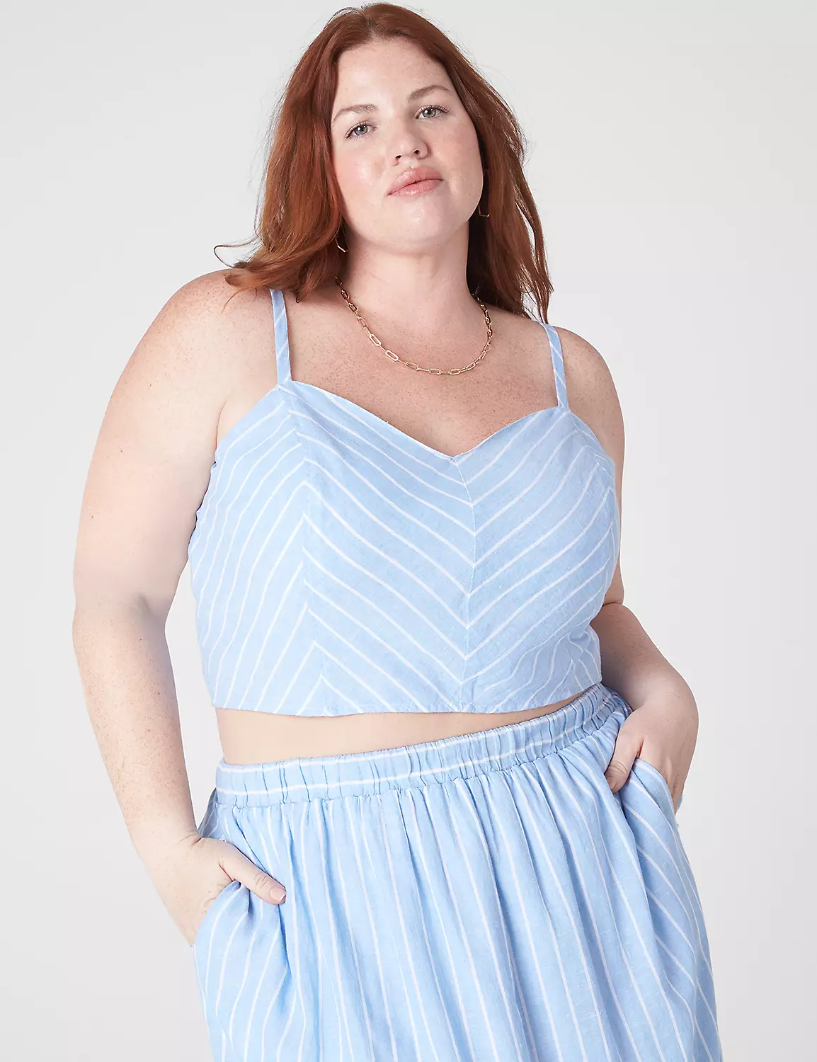 Warm-weather = crop top season. This fitted cami fits the bustier-vibe with thoughtful seaming and breathable fabric. Wear it with its matching skirt (#399605) for a perfectly coordinated look.