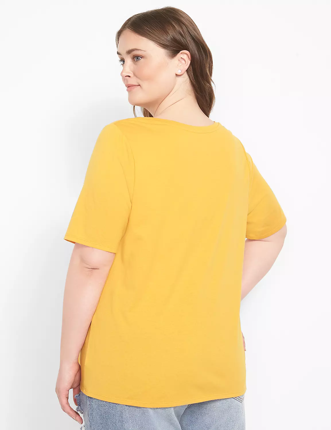 This fitted tee in cozy knit will be a core item in your closet — keep it casual with jeans and a baseball cap, lounge away in joggers or pair with a tiered skirt and sandals to dress it up.