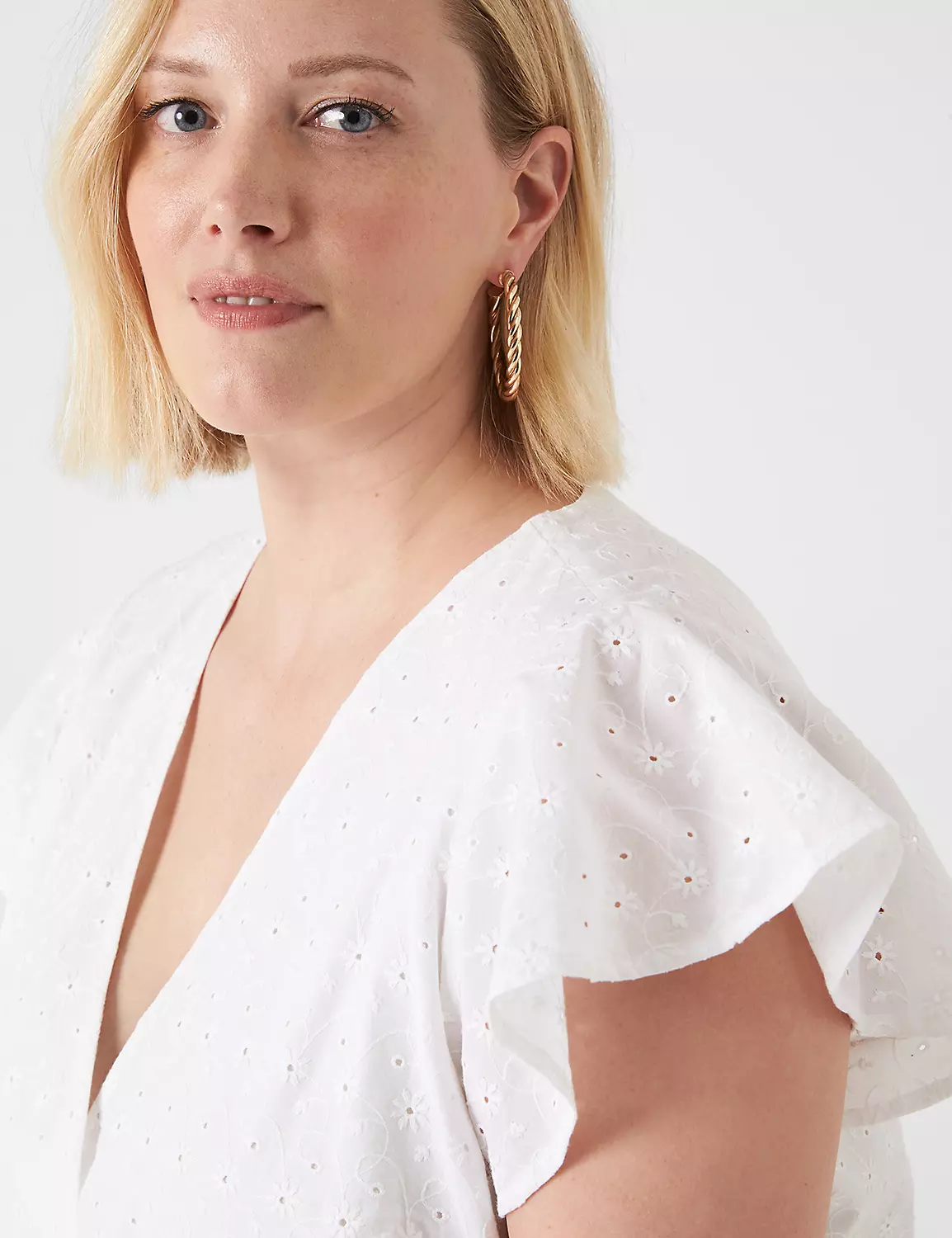 Soft eyelet meets dreamy flutter-sleeves for cottagecore confidence.