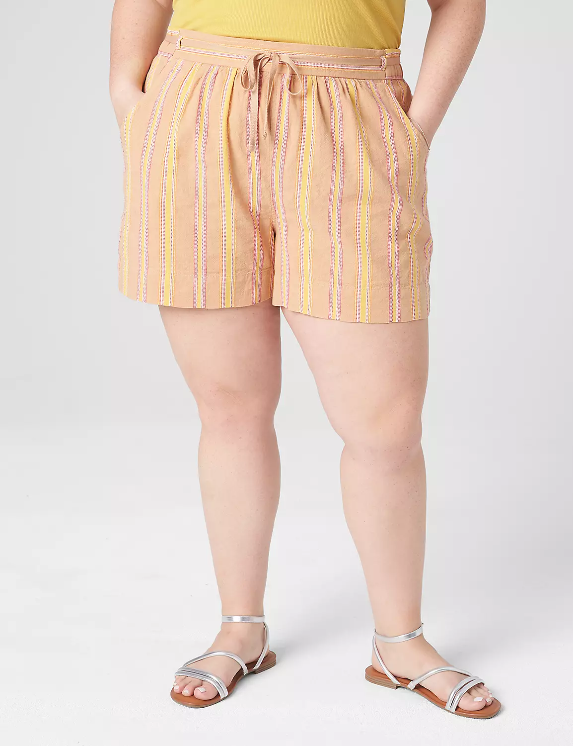 Your fave shorts, now with soft linen and a waist-cinching drawstring. Covered elastic waistband with drawstring and belt loops. Pockets.