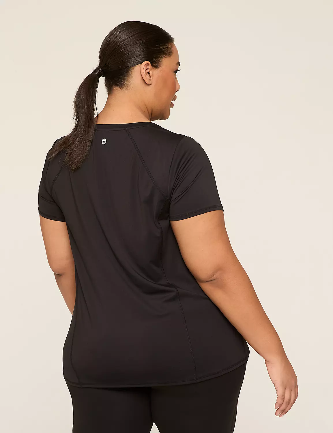 A wicking LIVI Active tee with flattering seams. V-neck. Short sleeves.