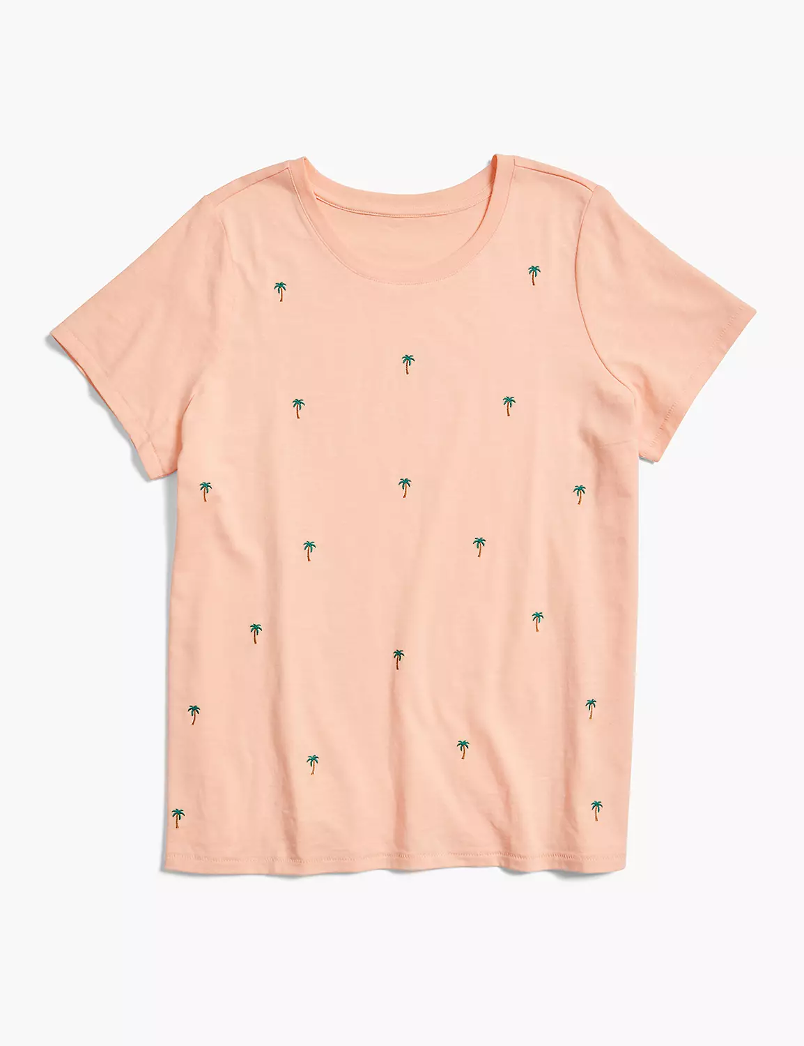 If a vacay was materialized as a tee, it would be this style in soft fabric with embroidered palm trees.