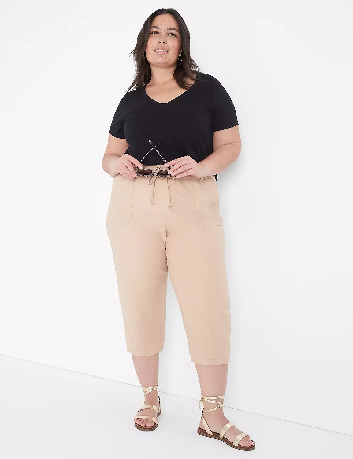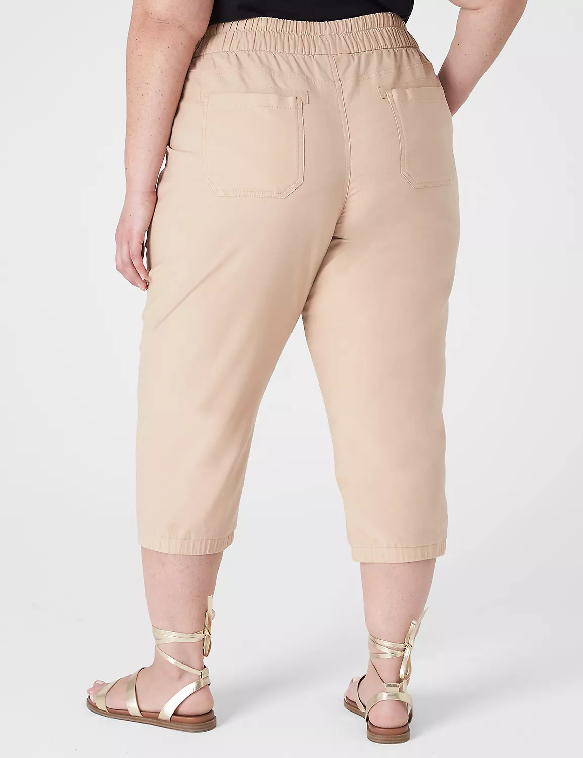 LEG SHAPE: Crop. Slightly slim from hip to just above the ankle.