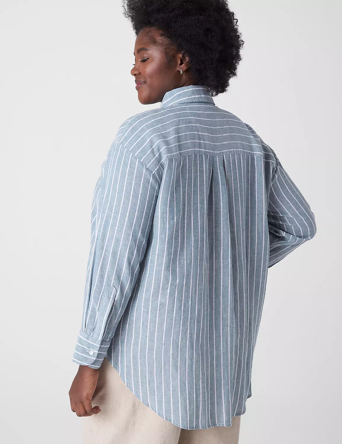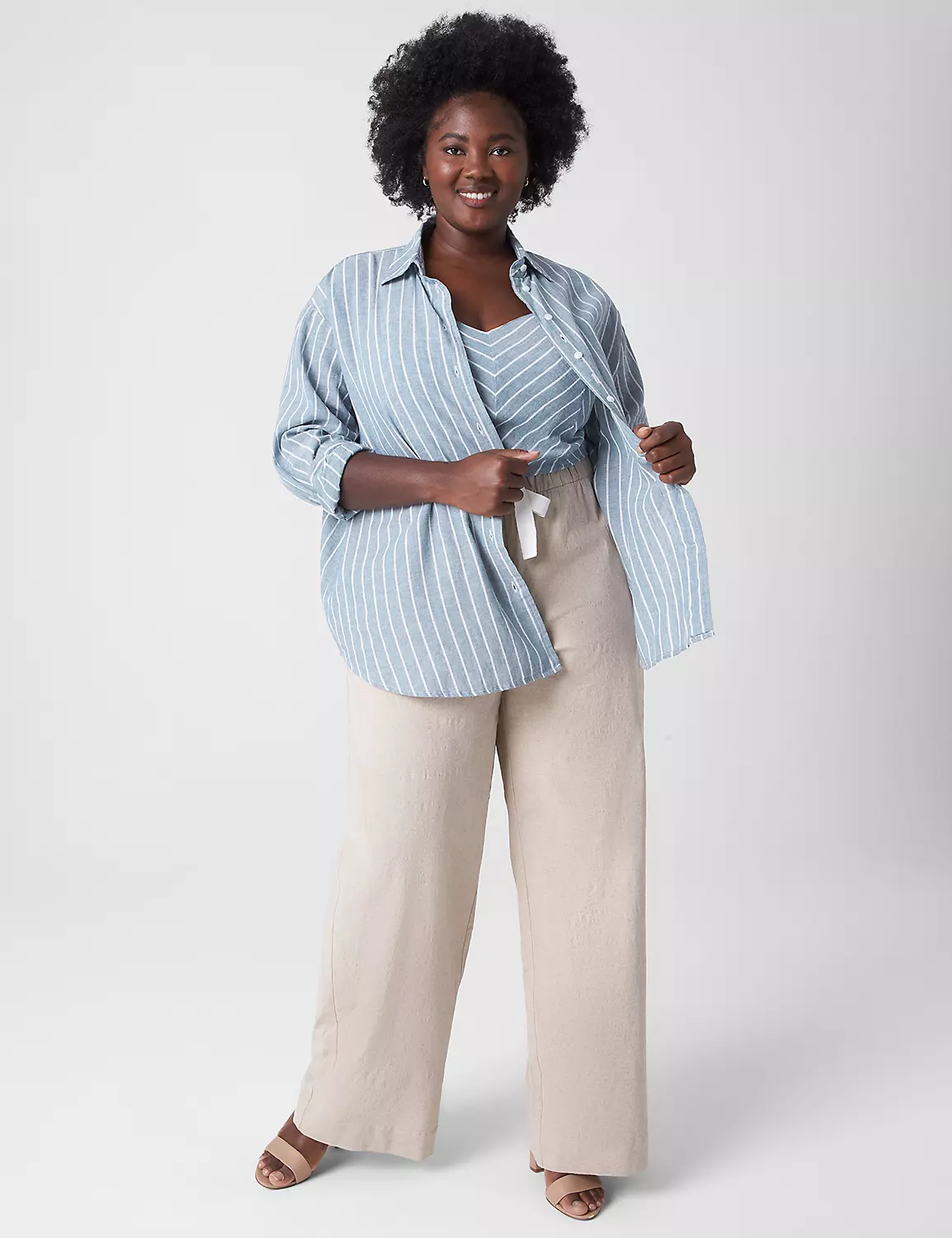 With so many ways to wear, (tucked into a pencil skirt to the office or tied up with jeans, to name a few), this relaxed fit tunic in a breathable linen blend is a must-have for the season.