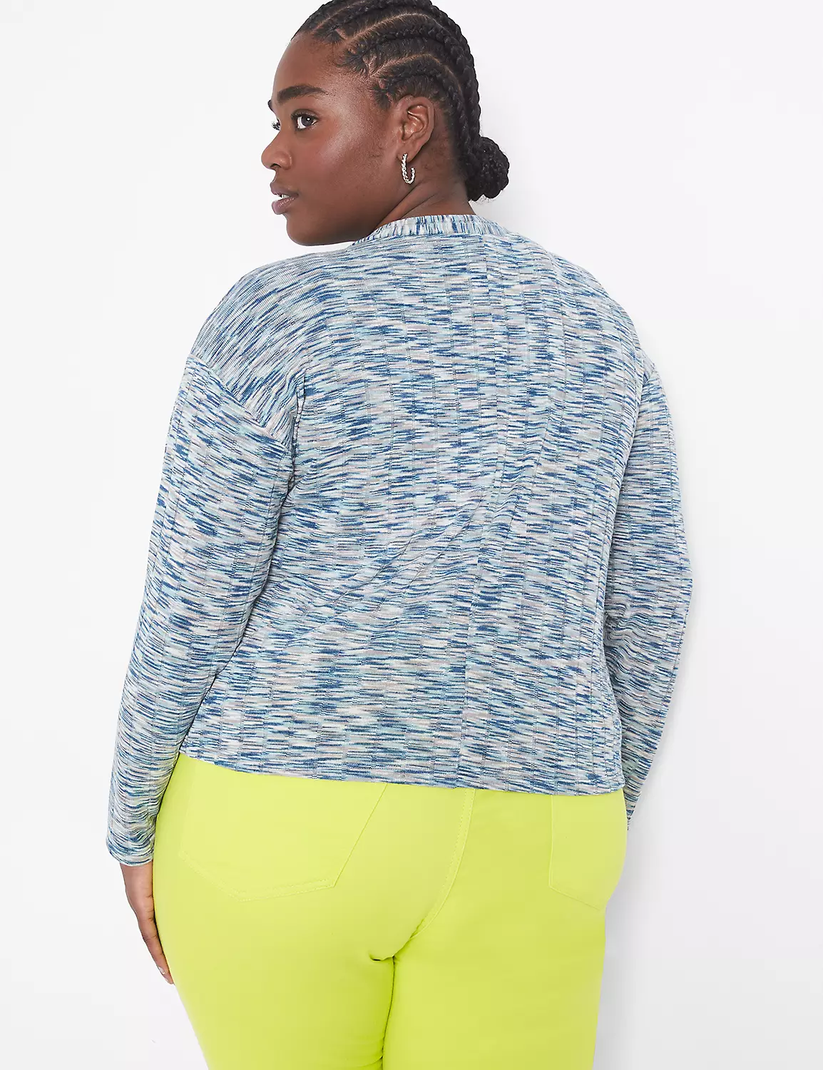 Wear-now button-front cardi in stitch-perfect spacedye. Pair it with its matching tank (#398845) for a coordinated-chic look.