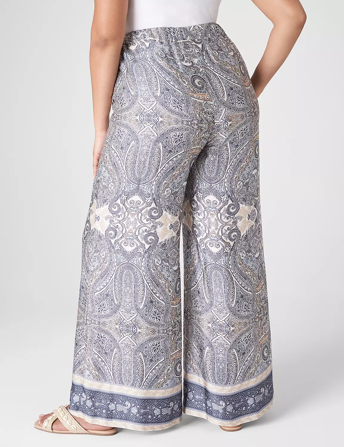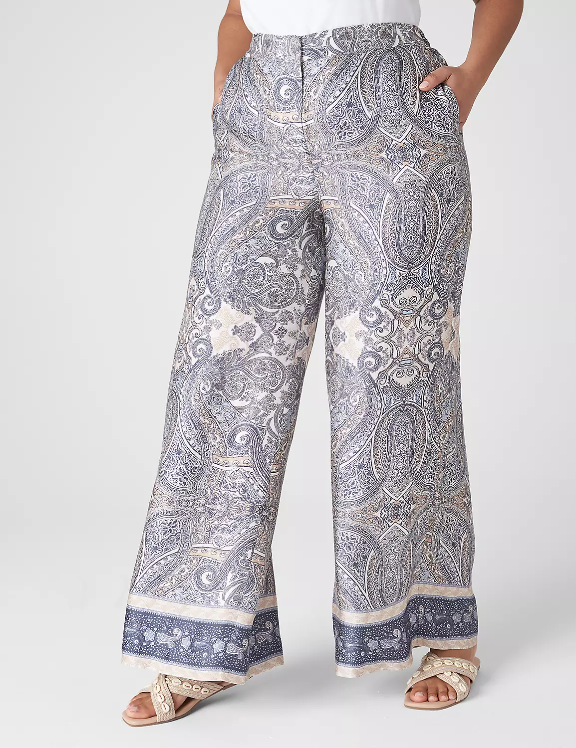 The It-Pant of the moment — the chic wide leg, plus silky satin magic. Effortless, Parisian style perfected. Style them with their matching top (#400071) for a perfectly coordinated look. Zip fly. Double bar & slide closure.