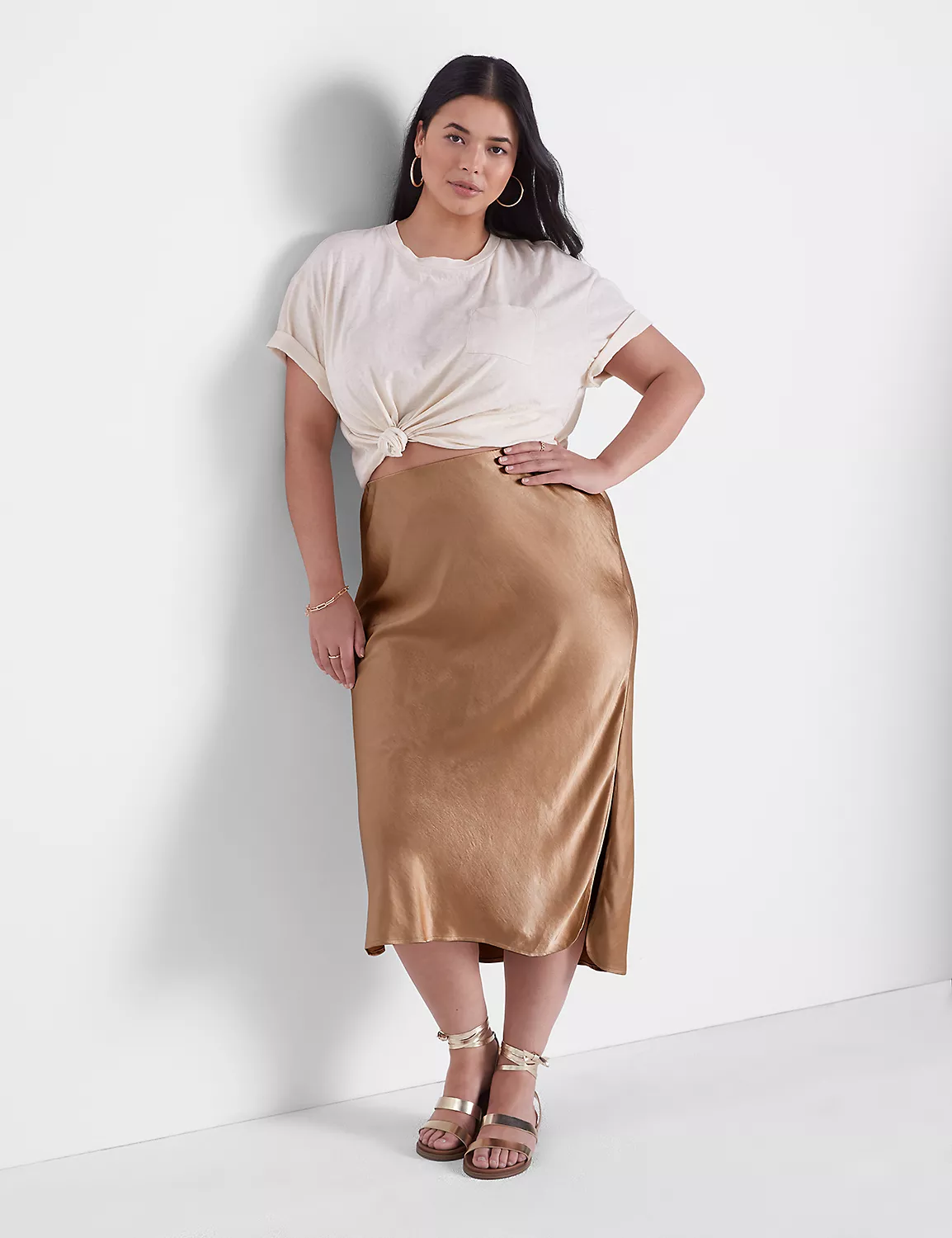 A maxi skirt with an easy pull-on hem and smooth-to-the-touch satin. Dress it up with your fave blouse + heels, or go for edge with a vintagey tee and combat boots.