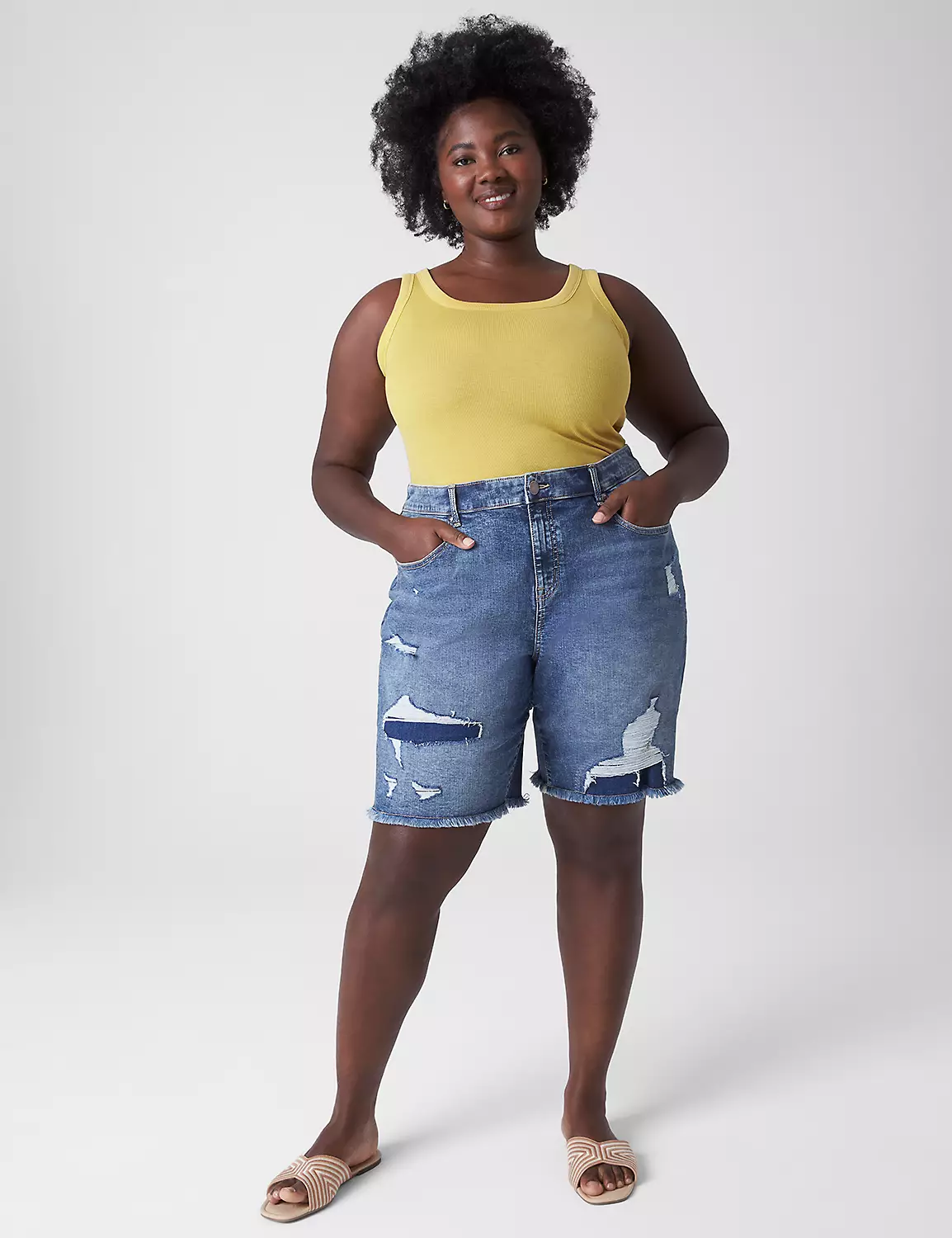 LEG SHAPE: Boyfriend Bermuda Short. Relaxed from hip through knee. Fit tip: Size down if you like yours to fit a little slimmer.
