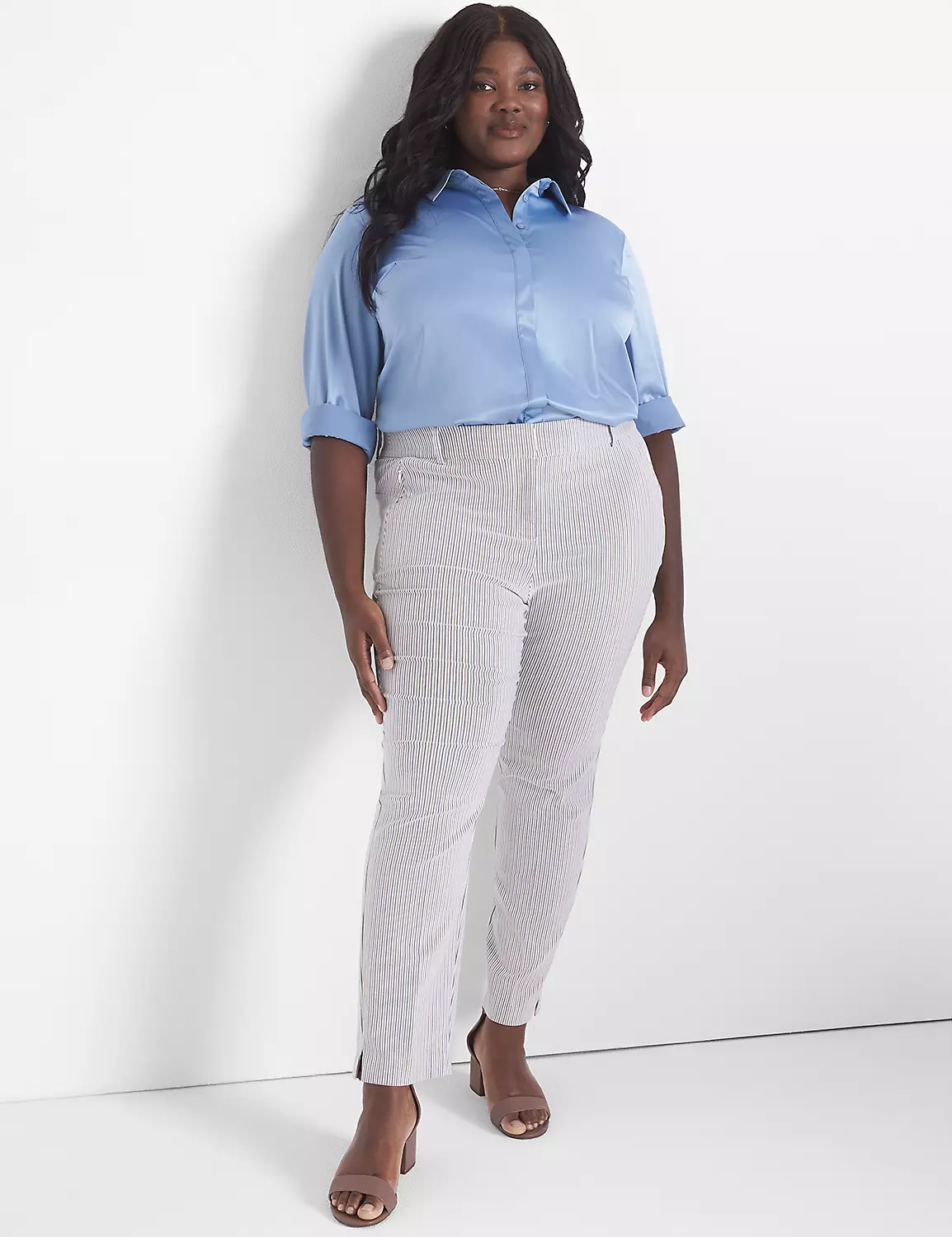 LEG SHAPE: Slim Ankle. Tapered from the hip to hem. Ankle length.