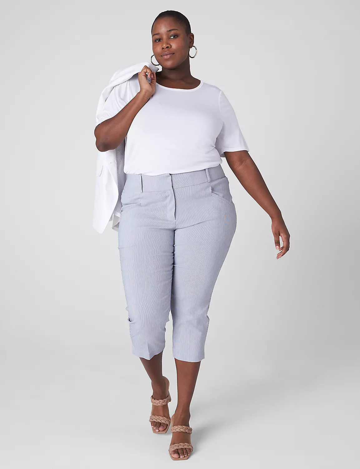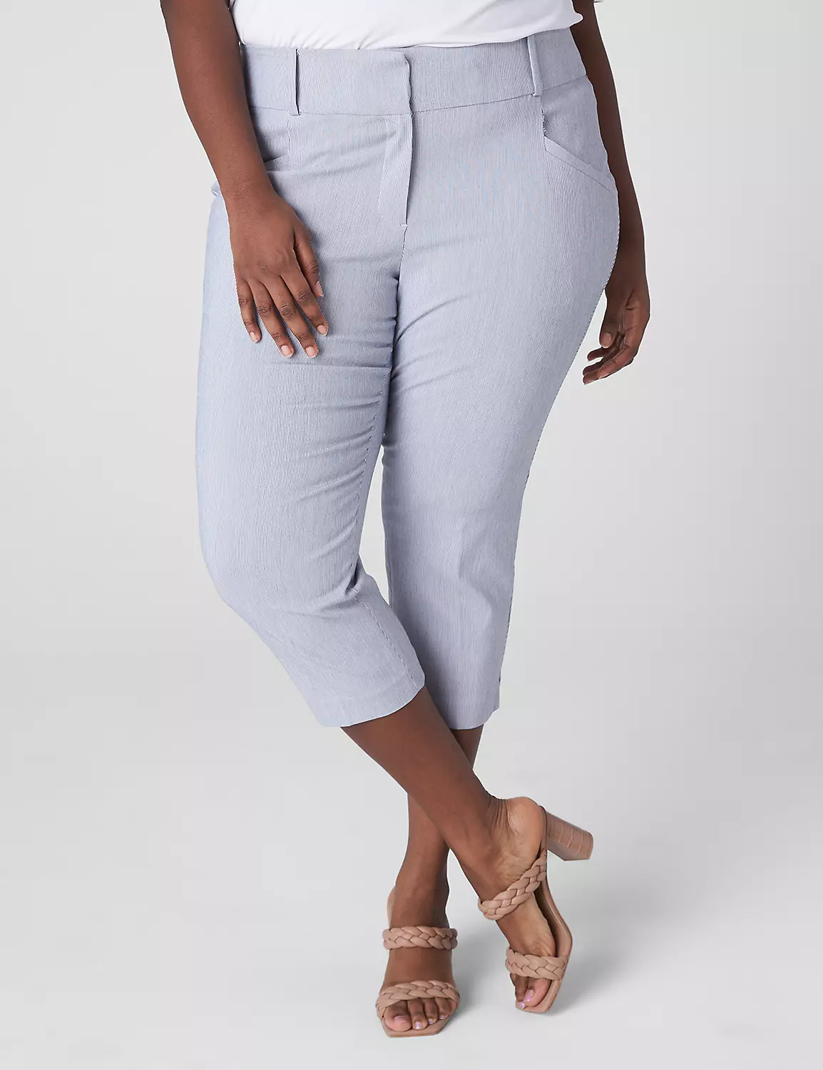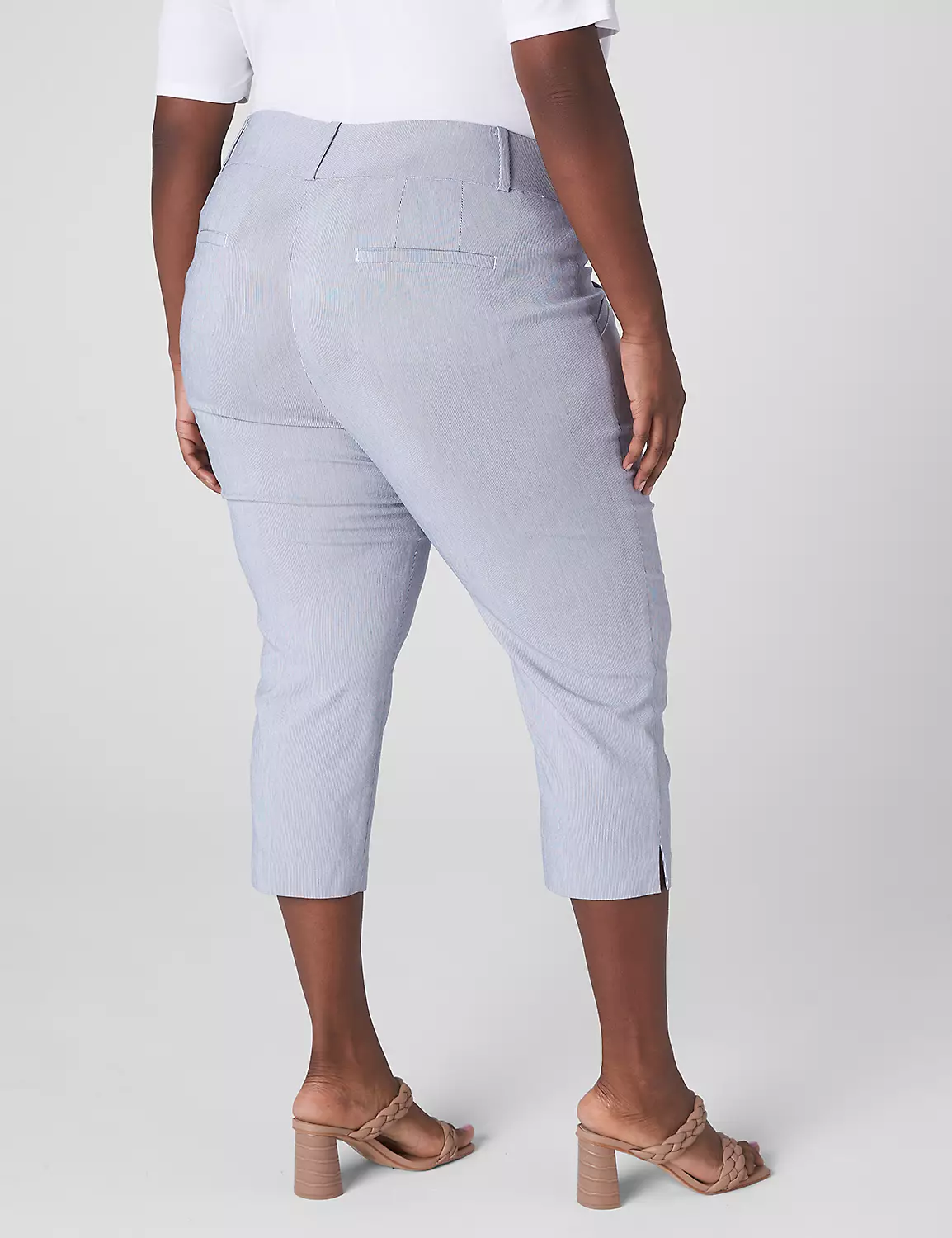 LEG SHAPE: Slim Capri. Slim from hip to mid-calf.