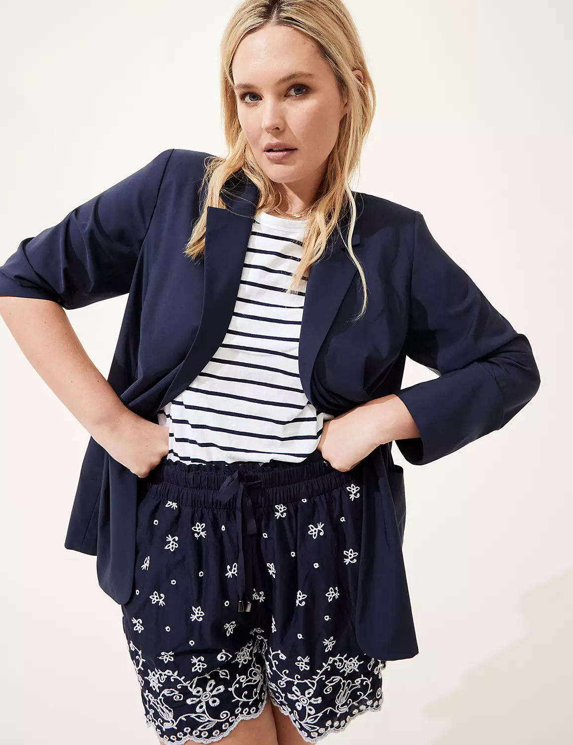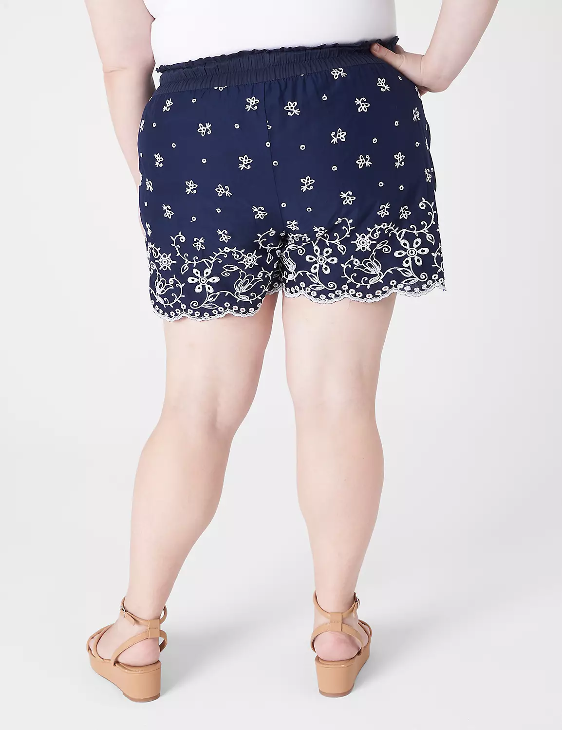 These shorts with pull-on ease and ethereal eyelet embody confident feminine style you’ll love all season long. Style with the matching top (#400233) for a perfectly coordinated look. Covered elastic waistband with grosgrain ribbon drawstring. Two front pockets. Scallop hem.