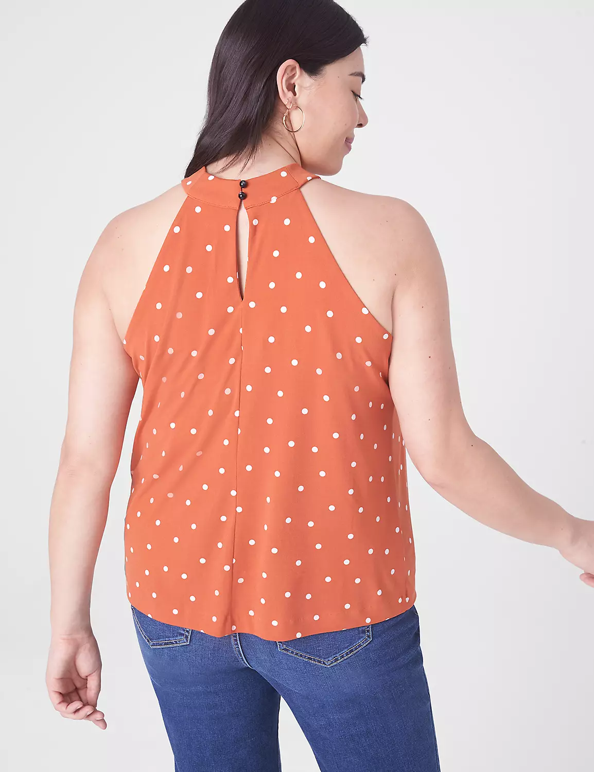 A top made for out-on-the-town excursions. The twisted halter-neck stuns, while the soft, comfy fabric will have you asking, “Should I get one in every color?”