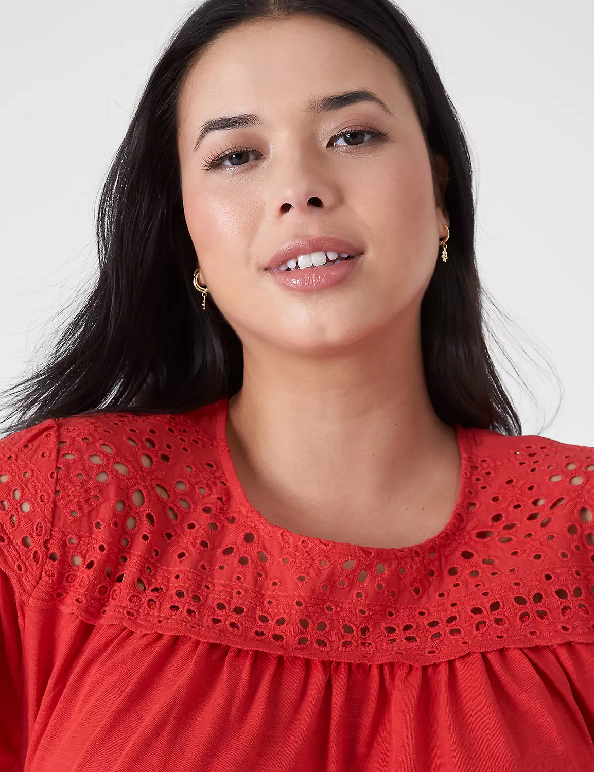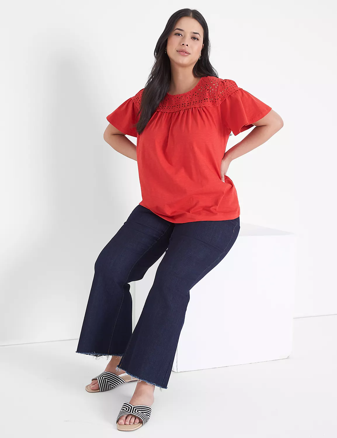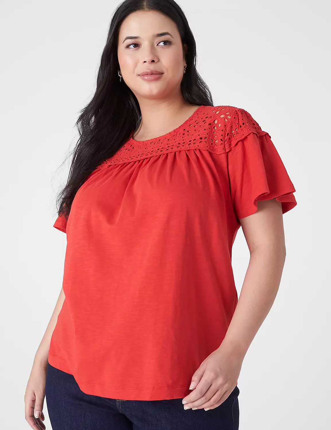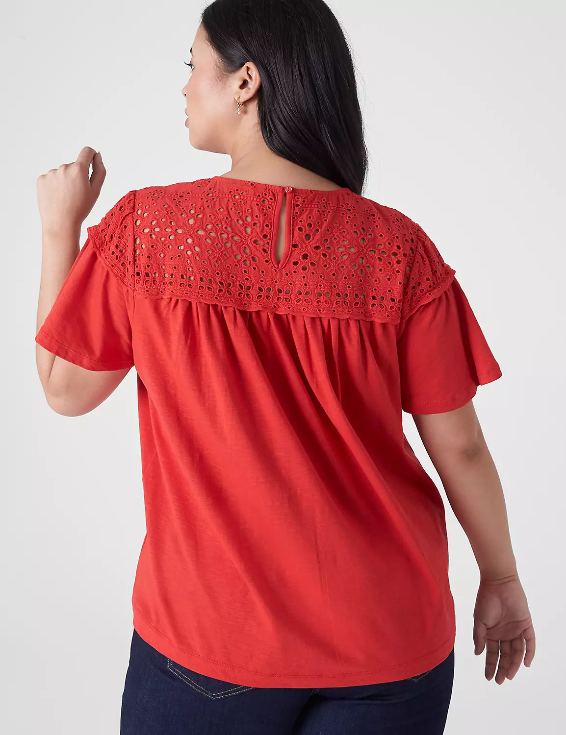 Enjoy the best of both worlds in this tee — soft knit with airy woven eyelet. Perfect to pair with polished pants or casual jeans, the styling possibilities are endless!